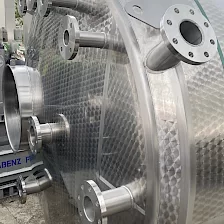Open tanks suitable for intermediate spirit receiving, mixing, dilution, and botanical maceration. A optional floating lid allows the volume to be adapted according to the customers needs. The lid is tightened by an inflatable gasket, and on large tanks can be manouvred with a crane and pulley system. The tanks can also be fitted with welded manways, other accessories and cooling jackets by request.